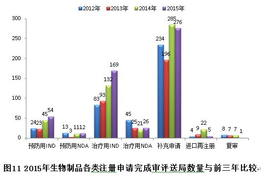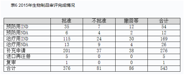 2015年中心完成生物制品審評543個,具體情況見下表。