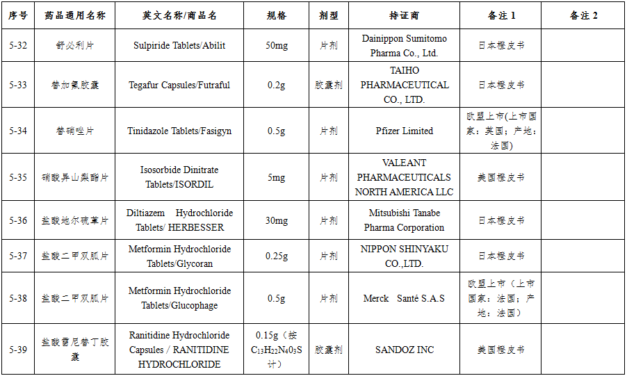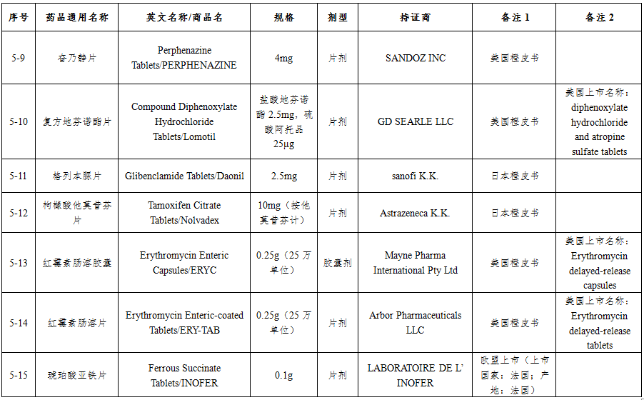 總局關(guān)于發(fā)布仿制藥參比制劑目錄(第五批)的通告
