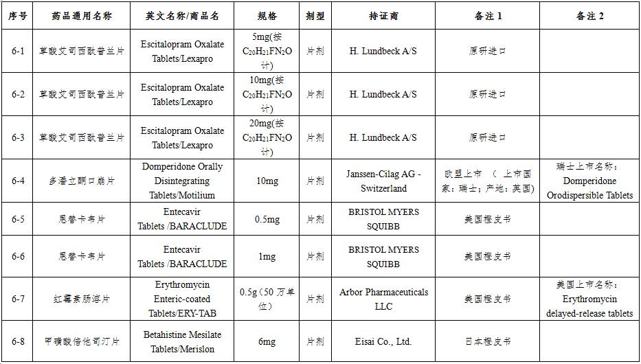 總局關(guān)于發(fā)布仿制藥參比制劑目錄(第六批)的通告