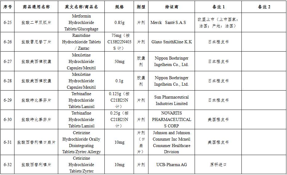 仿制藥參比制劑目錄(第六批)