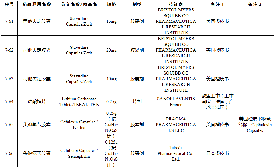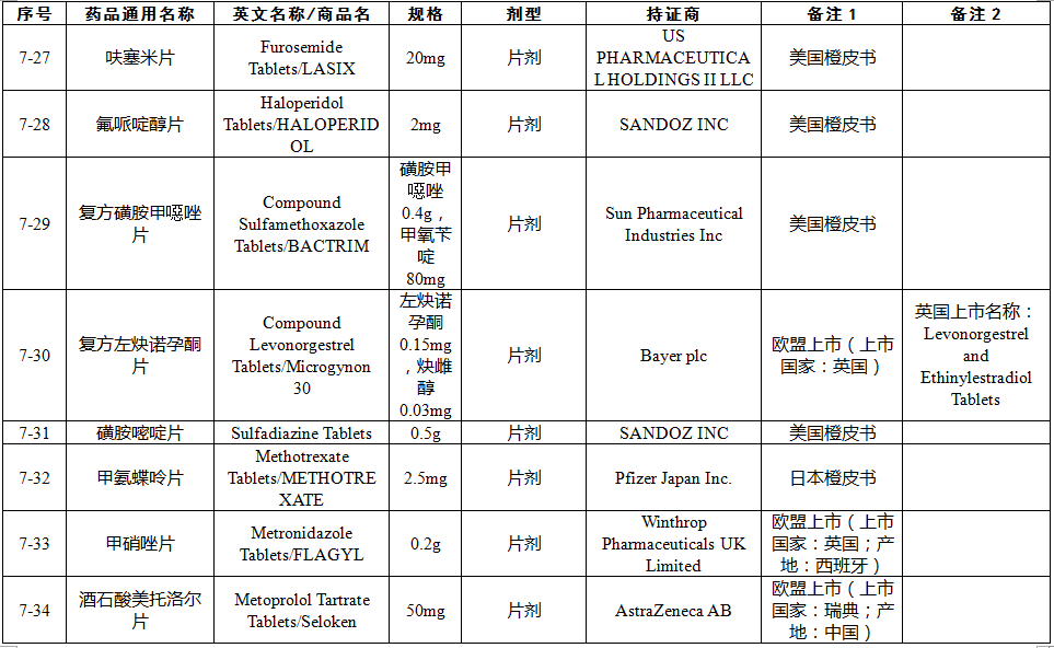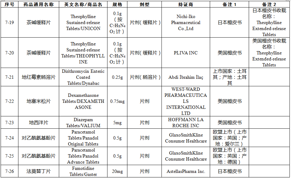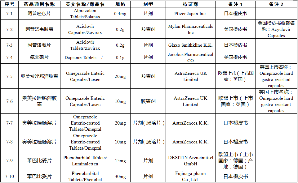 總局關(guān)于發(fā)布仿制藥參比制劑目錄(第七批)的通告