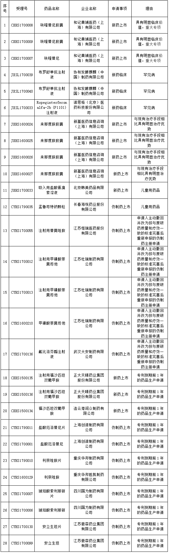 第二十二批擬納入優(yōu)先審評程序藥品注冊申請公示名單如下: