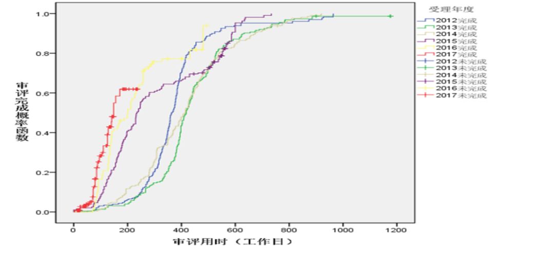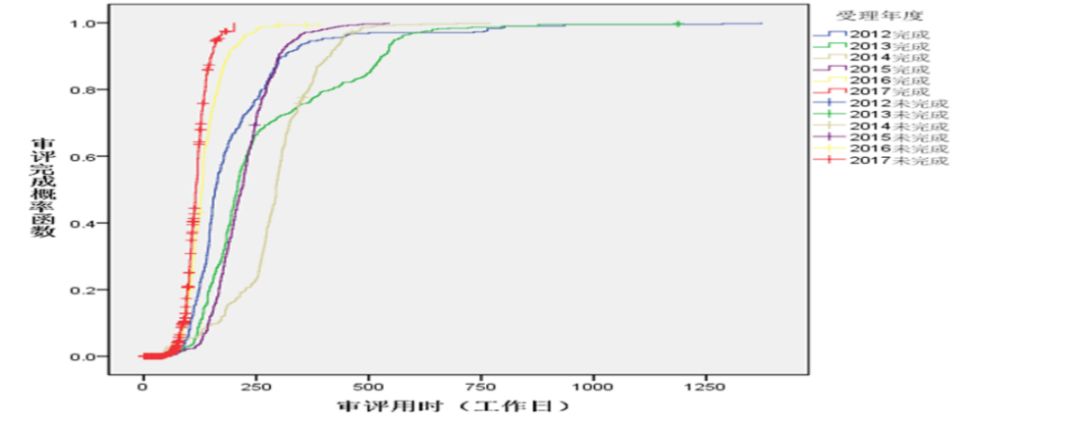 圖6 2012年-2017年各年度申報(bào)的NDA審評(píng)用時(shí)