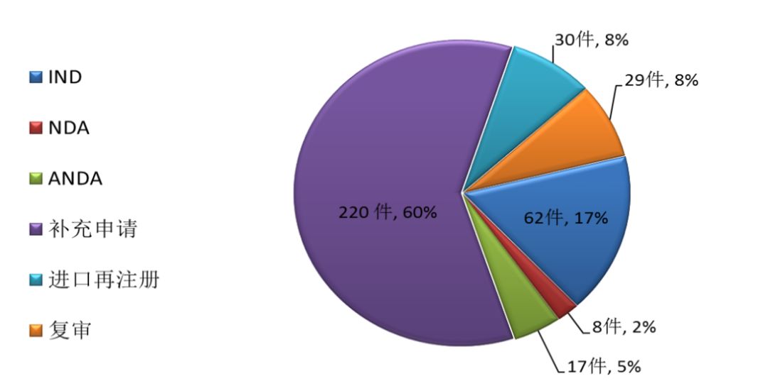 注:“其他”是指申請(qǐng)人主動(dòng)申請(qǐng)撤回的注冊(cè)申請(qǐng)、完成審評(píng)等待申請(qǐng)人補(bǔ)充完善申報(bào)資料的注冊(cè)申請(qǐng)、非藥審中心審評(píng)報(bào)送總局藥化注冊(cè)司的注冊(cè)申請(qǐng)、送總局醫(yī)療器械審評(píng)中心的藥械組合注冊(cè)申請(qǐng)和關(guān)聯(lián)制劑撤回的原料/輔料注冊(cè)申請(qǐng)等,下同。