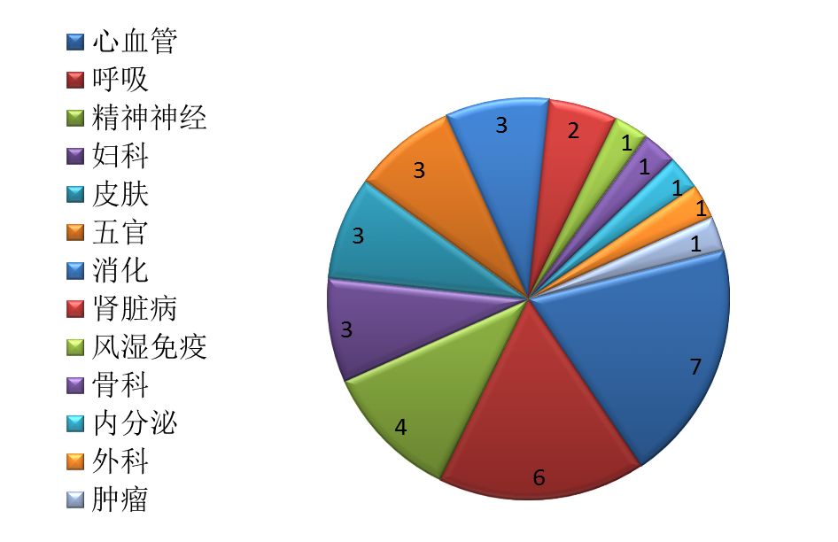 藥審中心審評(píng)通過批準(zhǔn)臨床試驗(yàn)的中藥IND申請(qǐng)36件,涉及13個(gè)適應(yīng)癥領(lǐng)域,其中心血管、呼吸、精神神經(jīng)較多,共占47%,具體治療領(lǐng)域分布詳見圖11。