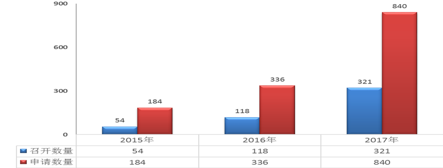 圖21 2015年-2017年各類溝通交流會(huì)議召開情況